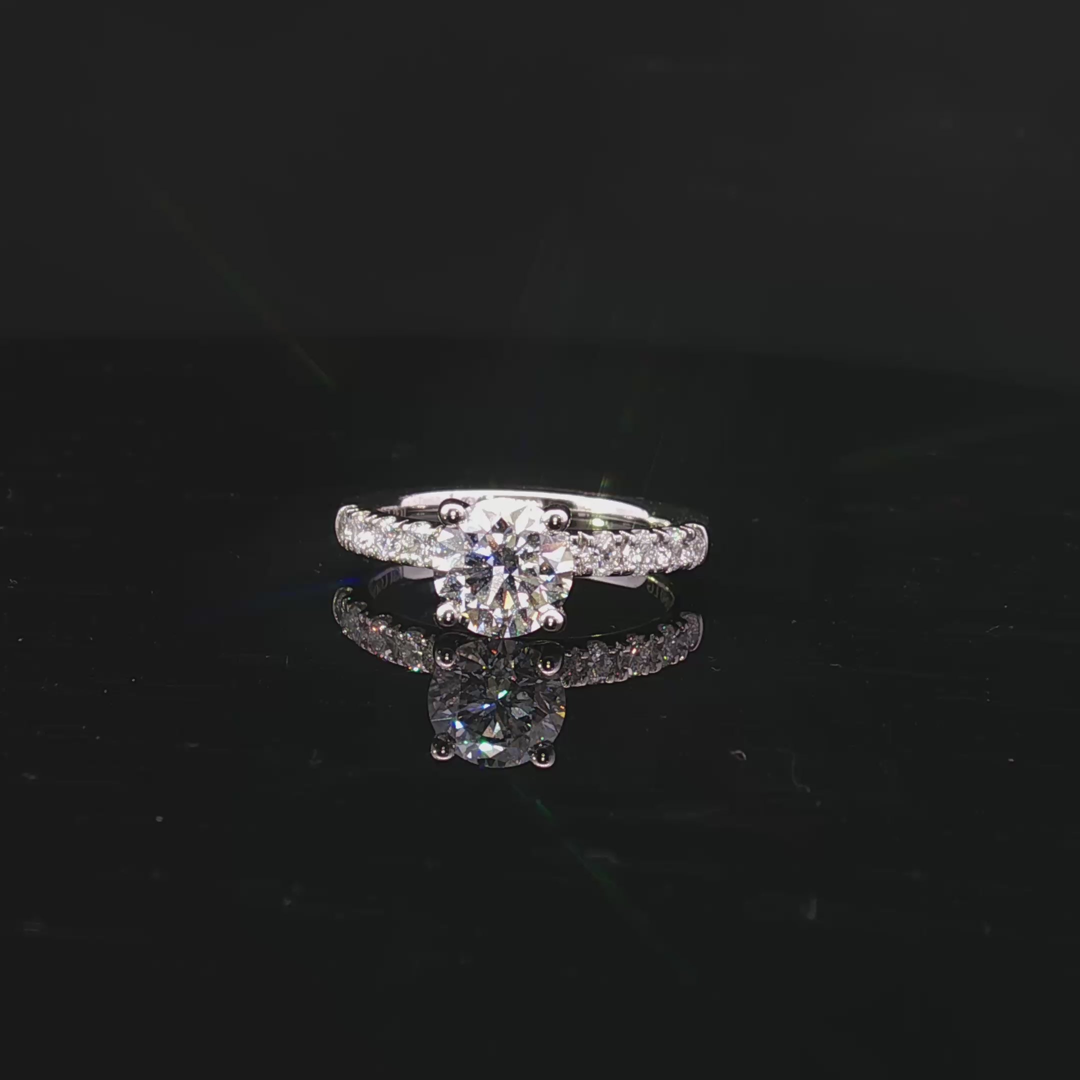 Expertly crafted in enduring platinum, this elegant lab diamond engagement ring showcases timeless design with exceptional brilliance. At its centre sits a stunning round brilliant-cut lab-grown diamond weighing 1.41 carats, securely held in a classic claw setting to maximise light return and sparkle.
